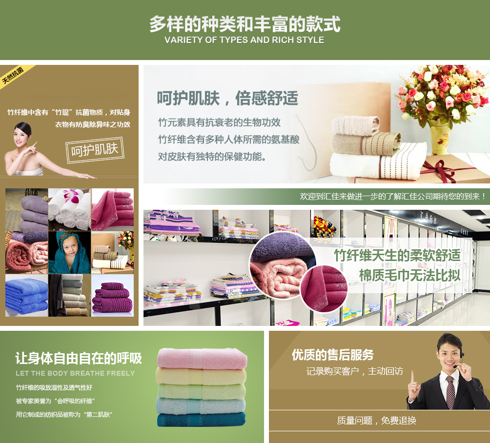 公司自2009年成立以來,一直致力于開發(fā)綠色環(huán)保產品,建有自己的科研和生產基地,擁有生產設備200多臺,生產員工200多人。公司品牌“竹之意”產品主要涵蓋竹纖維毛巾、襪子、內衣褲、服飾、床品,竹炭制品,活性炭雕等十大系列600多個品種。公司研發(fā)生產的竹纖維、竹炭制品均具有綠色環(huán)保、天然保健、柔軟舒適等優(yōu)點,順應了現代都市人追求健康....【更多】